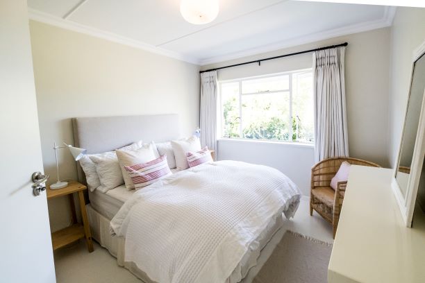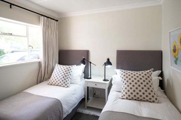 Sliding doors in the open-plan lounge/dining/kitchen provide lots of fresh air. Wood-burning stove in lounge provide warmth. Wall heater panels in all bedrooms. Gas weber braai plus brick built-in braai. Kitchen with gas stove, electric oven, fridge/freezer, microwave, dishwasher, clothes washing machine, clothes tumble dryer. Lounge with one TV with DSTV Premium and Fire stick. Fiber wifi. Two parking spaces within property, free on-street parking. Security beam system indoor and exterior, palisade fencing with razor-wire around entire property. There is a separate-structure flat at the back of property occupied by a long-term renter. 10,000L rainwater tank with pressure pump for loss of city water periods. Second tank gravity-fed for water during no power/no city water periods. Inverter/battery automatic backup system for power outage/loadshedding runs all interior overnight lights, security system, gate and wifi. Does not run bedroom panel wall heaters.