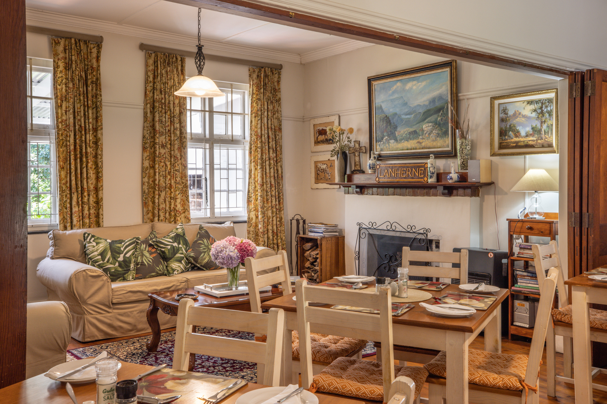 The main house has a lovely big verandah for socializing and a warm fire in the main house for the chilly winter days. We offer a full English breakfast between 7a.m - 9a.m. and we can arrange food vouchers for business people.