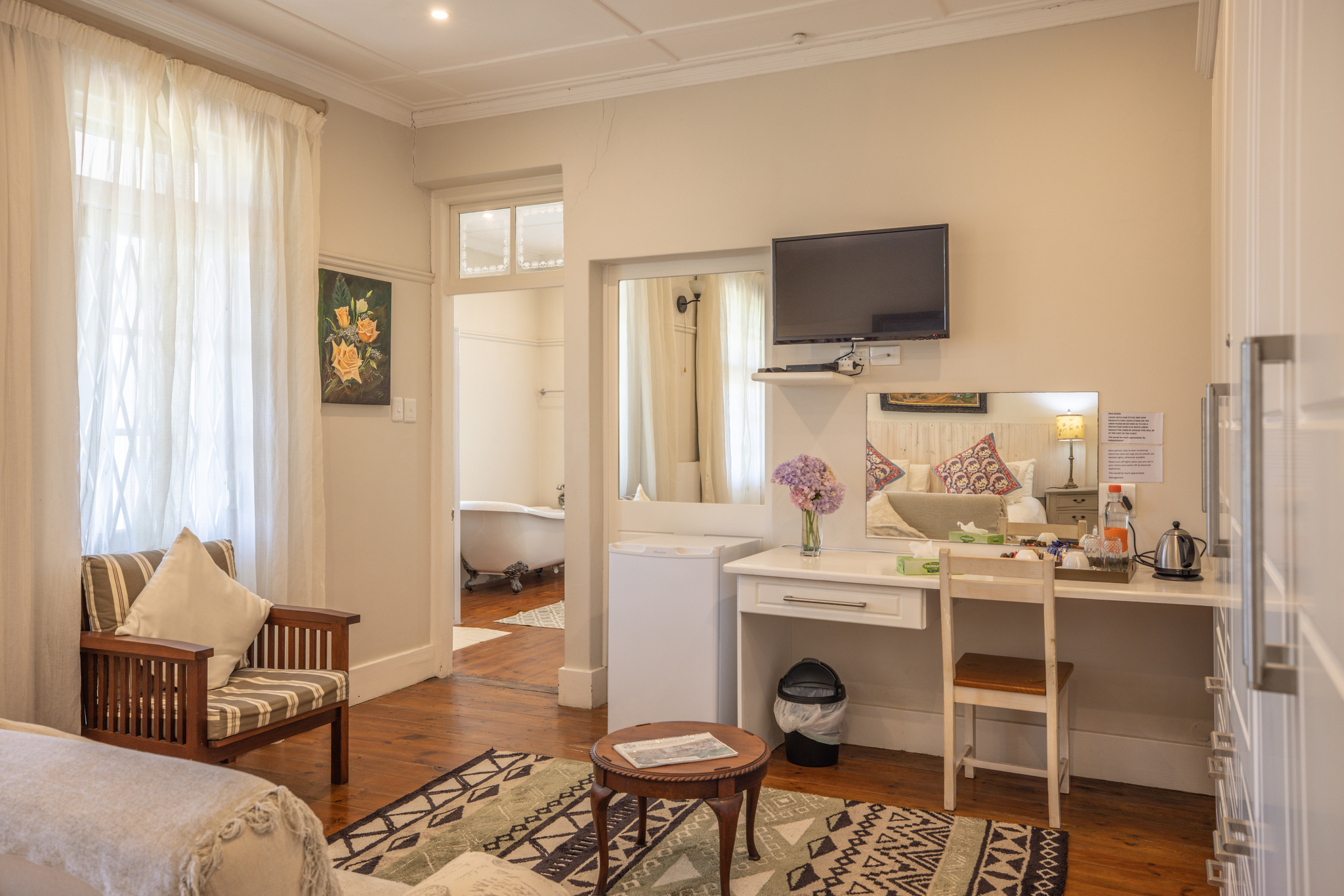 All rooms offer en-suite bathrooms, safe off street parking, dstv, wifi, and tray with tea and coffee facilities in all the rooms.
